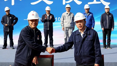 尹長(zhǎng)炳代表北油工程鄭重簽署項(xiàng)目中間交接書(shū),正式宣告該50萬(wàn)噸/年甲醇制乙醇項(xiàng)目圓滿(mǎn)完成中交目標(biāo)。